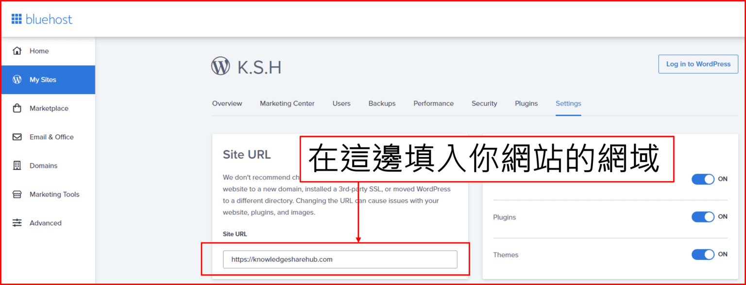 如果Bluehost WordPress 後台無法顯示怎麼辦? WordPress後台進不去?? 不用擔心,只需要進去bluehost裡面重新網址設定一下就可以了,先進去bluehost首頁,點選My Sites,再點Manage site。 再如圖中所示,輸入你網站的網域進去就完成了,接下來再重新試一次 (你所註冊的網域).com/wp-admin看看吧!