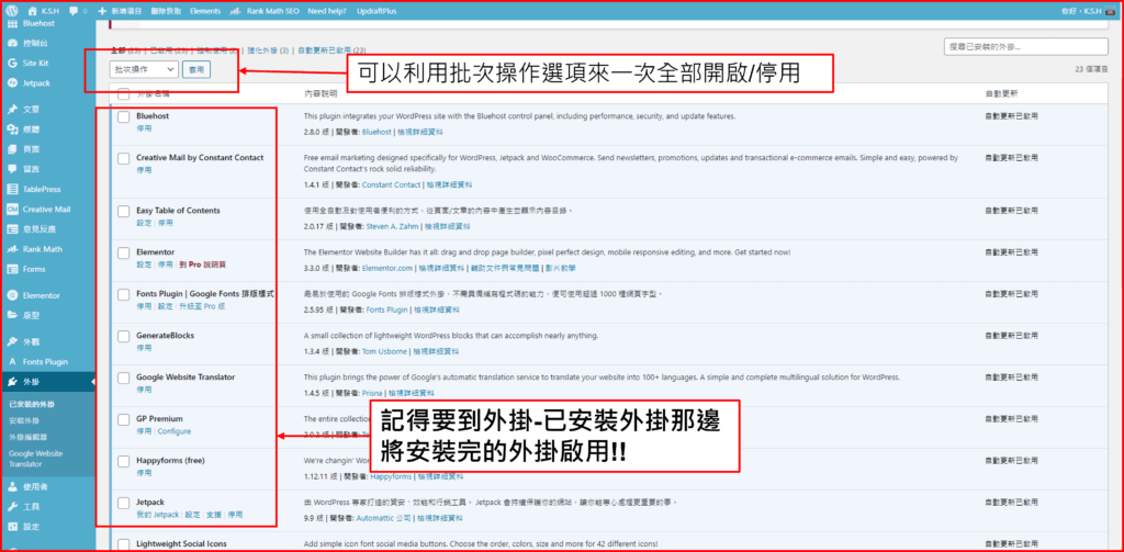 安裝完外掛要記得去啟動喔,不然只是載進去的話不會有效果。