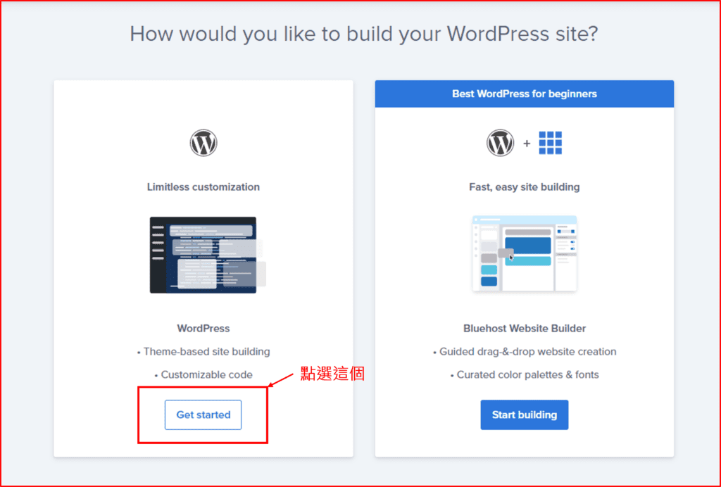 點選Get started進入bluehost後台八!