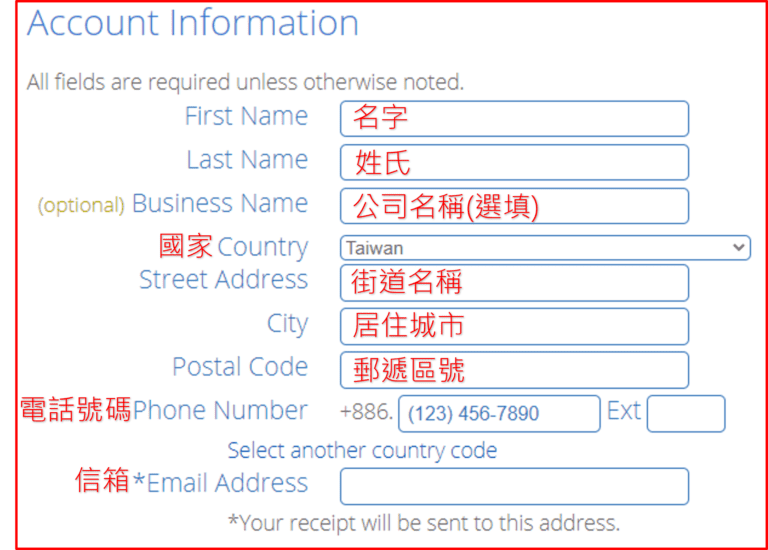 接著就是要輸入帳戶資訊(Account Information)