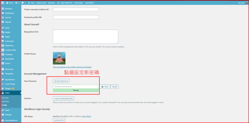 進入後台後先點選Users然後按自己的使用者,我們要先改密碼,不然一開始他們給的密碼是隨機亂數,沒改的話影響到之後的登入。