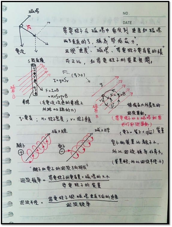 帶電粒子在磁場中會受到速度和磁場兩方垂直的一力,稱為“勞倫茲力”。