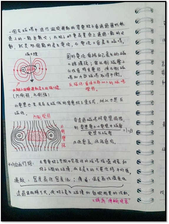 反磁性:圓形電流會因為磁力線不斷往外擴張而使外側磁壓上升,一旦上升後就會把他推回去,使外部磁場跟內部磁場平衡。